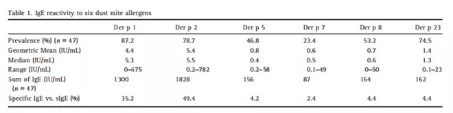 Der p 23 accounts for a small percentage of the IgE response to mite allergens, which is dominated by Der p 1 and Der p 2. The prevalence and amount of specific IgE to Der p 23 and Der p 2 are disproportionately high compared to the expression of other Dermatophagoides allergens.