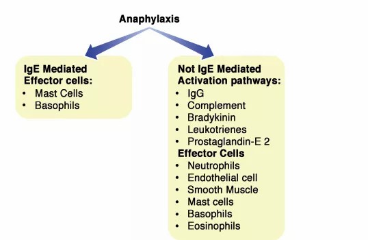 For example, rare clinical observations in humans suggest that anaphylaxis arises not only following the IgE/mast cell/basophil axis but also from neutrophils, platelets, endothelial cells activated via various mechanisms such as complement activation, neuropeptide release, IC formation, cytotoxicity, and IgG-dependent reactions, and the involvement of purinergic metabolism with mechanisms not yet fully understood.